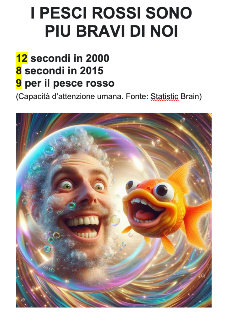 Perché ho, da sempre, pensato che il consumatore ha pochi secondi da dedicare a un messaggio marketing in provenienza di un brand e che questi preziosi secondi devono permetterci di sedurlo & convincerlo.